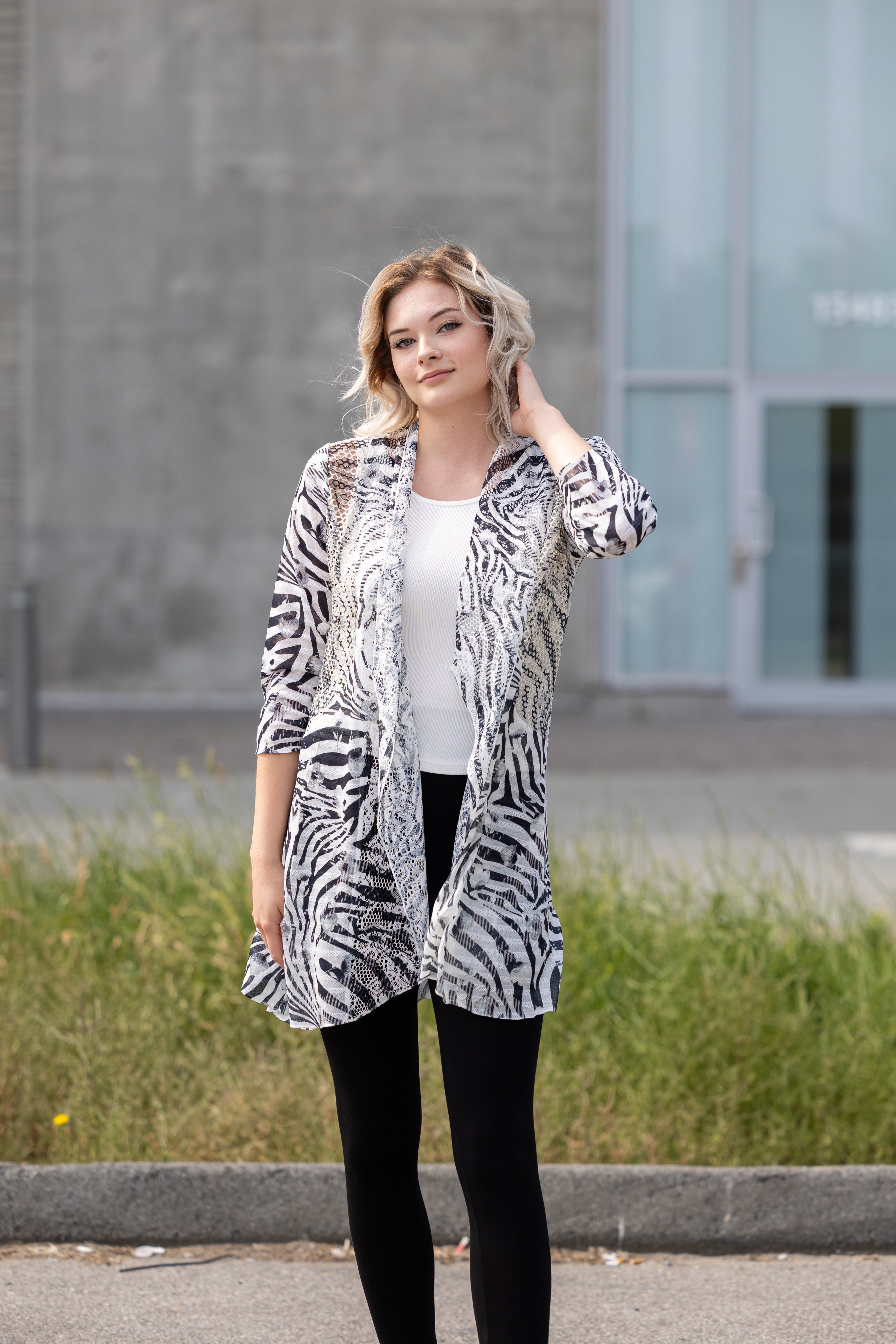 Textured Open-Front Coat