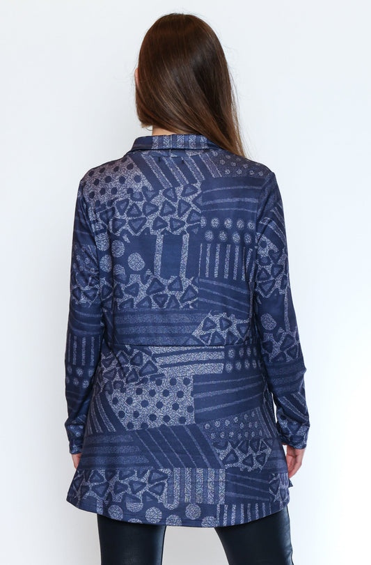 Denim Patch Print Drape Cardigan
