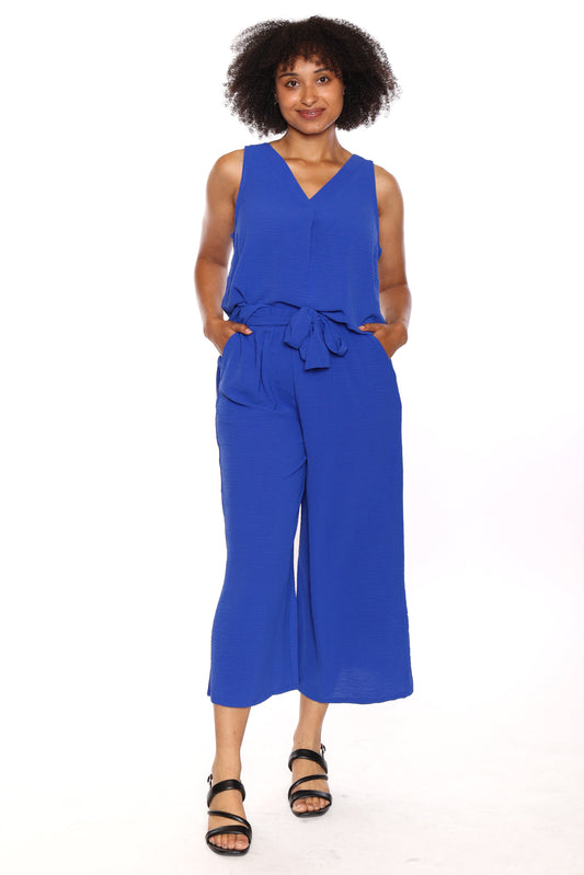 Printed Sleeveless Top & Wide-Leg Pant Set