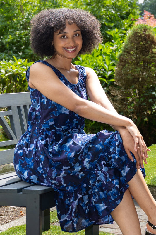 Smocked Waist Half Sleeve Midi Dress with Tassel Tie