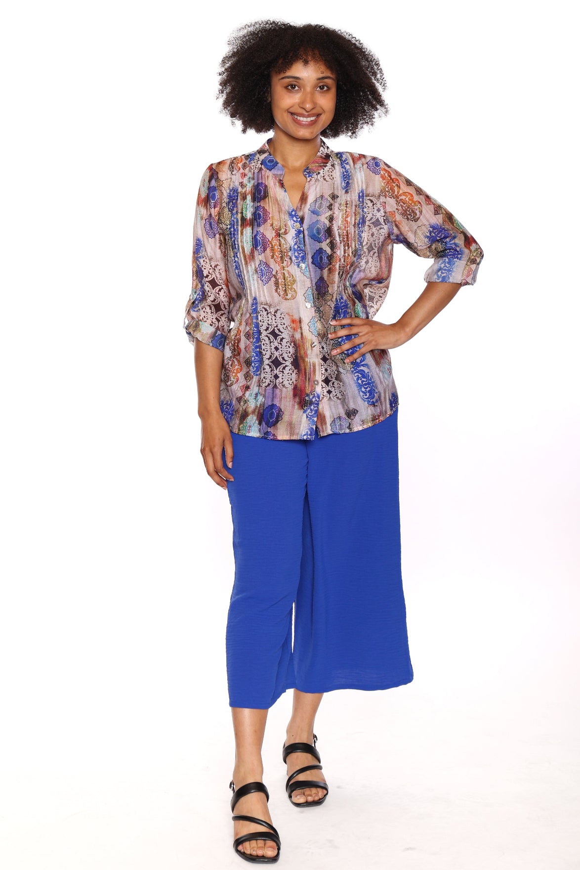 Light, breathable, and beautifully tailored, the Daphne Top brings a fresh elegance to your everyday wardrobe. Crafted from a soft cotton-nylon blend, it features a modern Chinese collar, button-down front, and roll-up sleeves with button-tab detailing for added versatility. Whether in soft pink or cool blue, the delicate print adds charm without overpowering — ideal for daytime events, casual lunches, or an elevated everyday look.