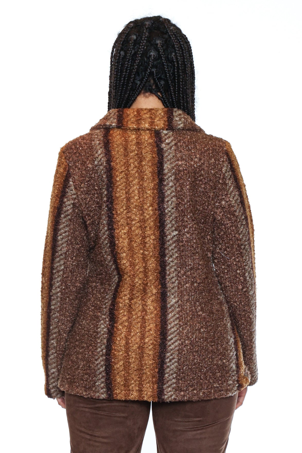 A cozy and chic statement piece for the cooler seasons. This soft-textured coat features a structured collar, front button closure, and roomy patch pockets for effortless layering. The timeless plaid and striped patterns add a touch of sophistication while keeping comfort front and center. Perfect for pairing with jeans, trousers, or skirts for a versatile look.