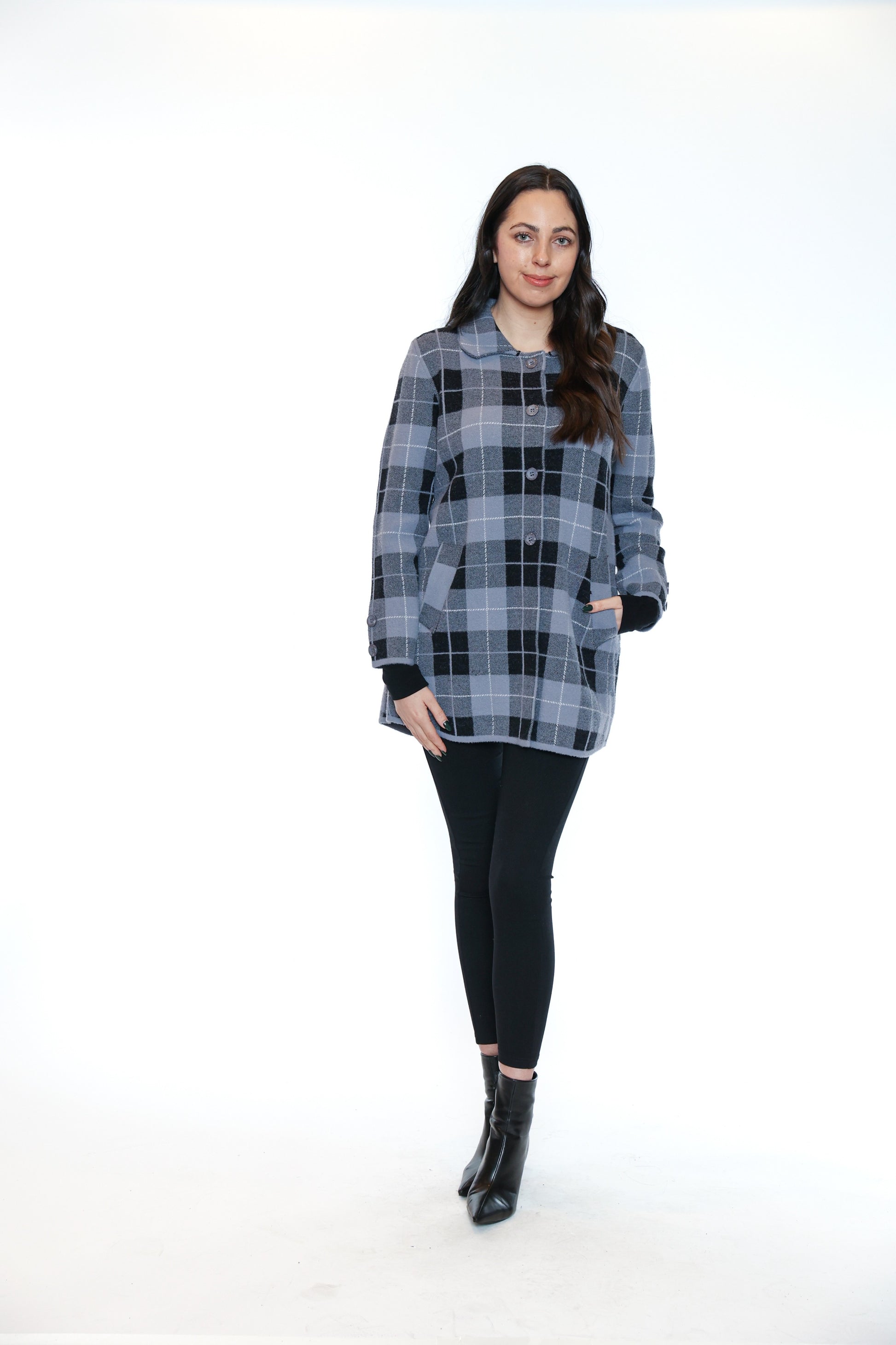 Classic plaid meets modern comfort in this chic button-front coat. Designed with a relaxed silhouette, side pockets, and a cozy mid-thigh length, it’s the perfect layering piece for cooler days. The soft fabric blend provides warmth while maintaining a lightweight, easy-to-wear feel.