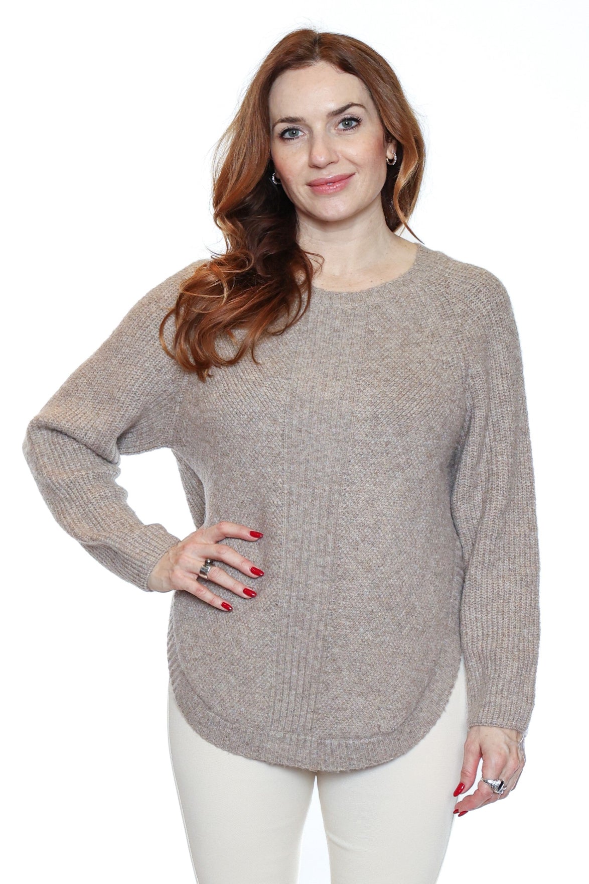 A cozy everyday essential with a polished twist. This soft knit sweater features a relaxed fit, crew neckline, and a flattering rounded hem that drapes beautifully. Perfect for layering or wearing solo, it offers a timeless and effortless look for cooler days.