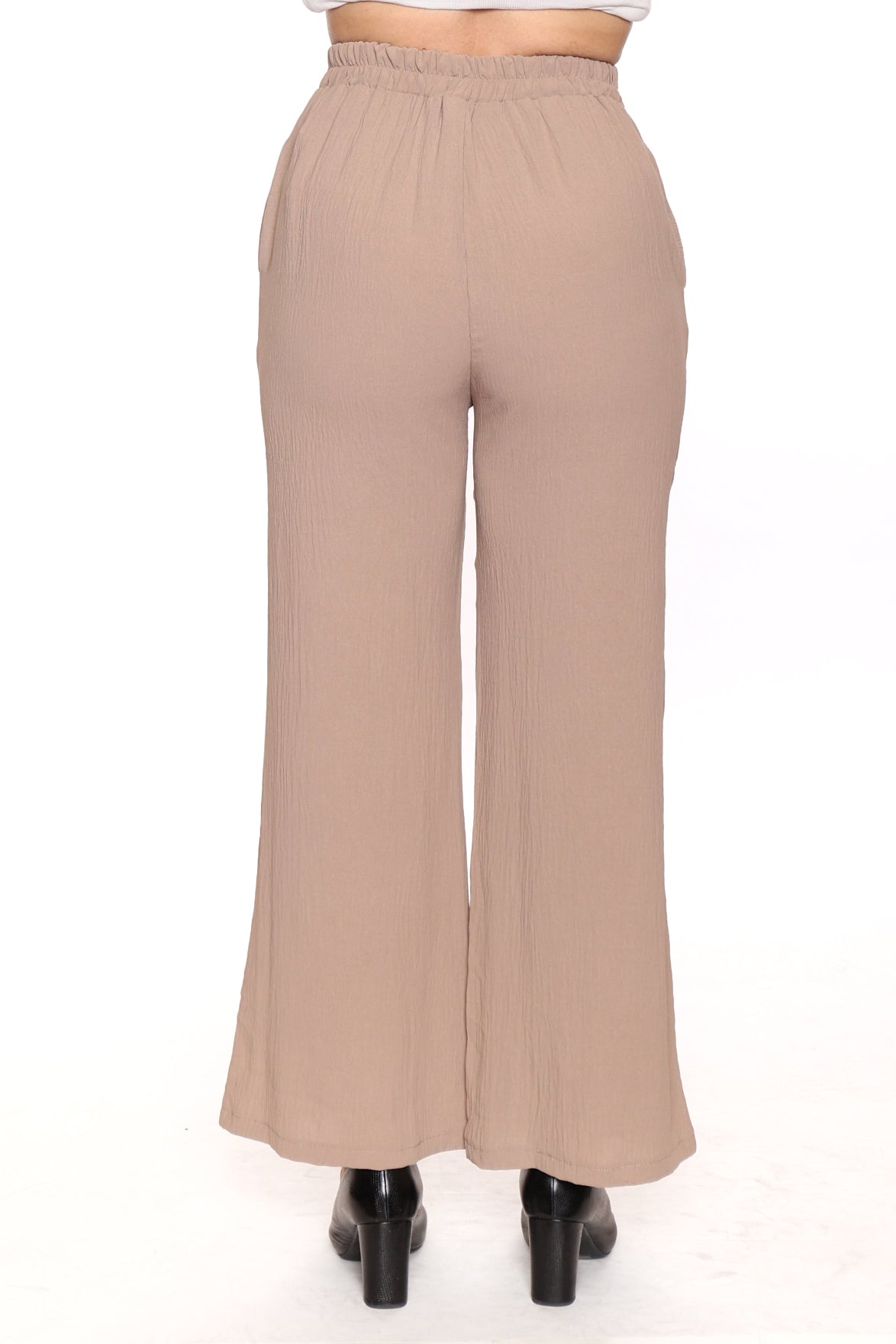 Sleek flared pants with an elasticized back for comfort and a smooth front waist accented by button details—perfect for a tucked-in look.